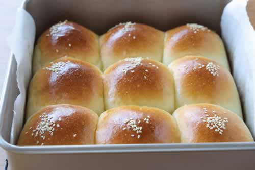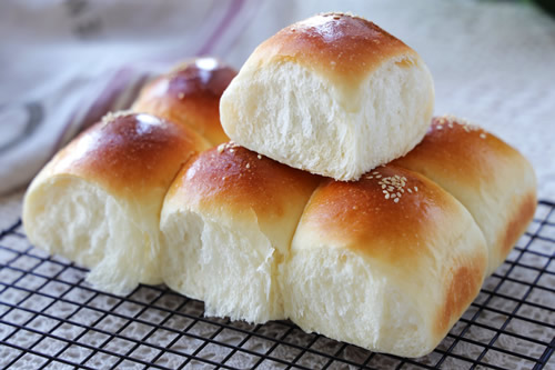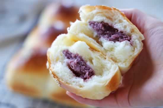 9、个人特别喜欢这样的小餐包,面包体松软拉丝,馅料细腻香甜,尤其是加了这样的芋泥馅料,一口气可以吃下3个,早餐吃的时候,在烤箱复烤5分钟左右,或是微波炉叮几分钟,口感跟出炉的时候一样,松软好吃!