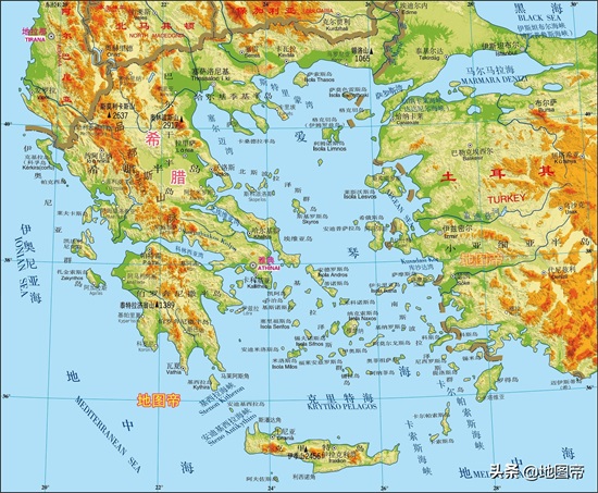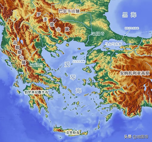 在喀尔巴阡山脉以南有一片介于地中海与黑海之间的半岛,这便是巴尔干半岛。该半岛呈现一个倒三角的形状,其西侧为亚得里亚海,东侧为黑海,南部的尖角深入地中海的部分就是希腊。与巴尔干半岛隔博斯普鲁斯海峡相望的部分是土耳其的安纳托利亚半岛,故而巴尔干半岛深受伊斯兰教影响。