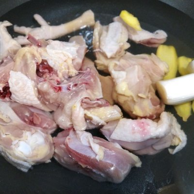 2、锅内冷水加姜片,葱段,料酒,大火烧开。洗掉浮沫捞出。