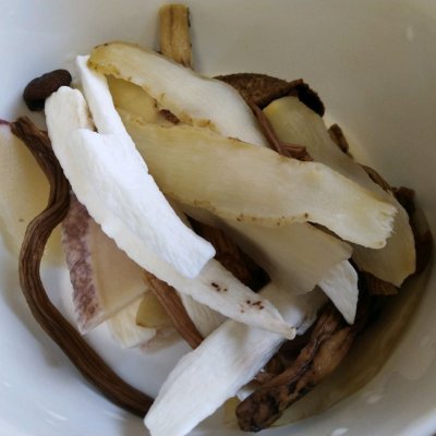 鸡肉 适量 鲍鱼 3-4个 虫草花 适量 姜片 2-3片 水 适量 葱段 两段 料酒 两勺 螺片 一片 茶树菇 两朵 陈皮 一块 淮山 4片