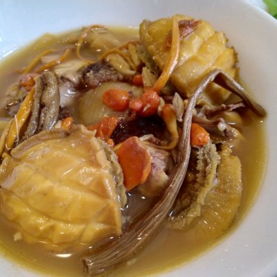 今天专门早起去了盛平市场,走路只有不到500米距离。穿过杨氏老屋的巷子,弯弯转转就看到了热闹的菜市场。 鲜活鲍鱼一斤刚好8头64块。活蹦乱跳的基围虾45块一斤。一条一斤多的金鲳鱼只要18块。芭乐,沃柑,西红柿,苋菜和线椒都很新鲜。 冰箱里刚好只剩下半只鸡块儿,需要在离开深圳前消灭掉;又刚好昨天在超市里买了一包螺片虫草花汤料。于是,用最最简单的煲汤法,做了这道毫无难度的鲍鱼炖鸡。 大道至简。食材在文火的加持下,相互感染浸润,只需要加一点点儿豉油和盐,就迸发出无敌的浓郁鲜美。 人间有味是清欢。在升腾的烟火气里,家的味道也因此浓郁了起来,温馨,静好。
