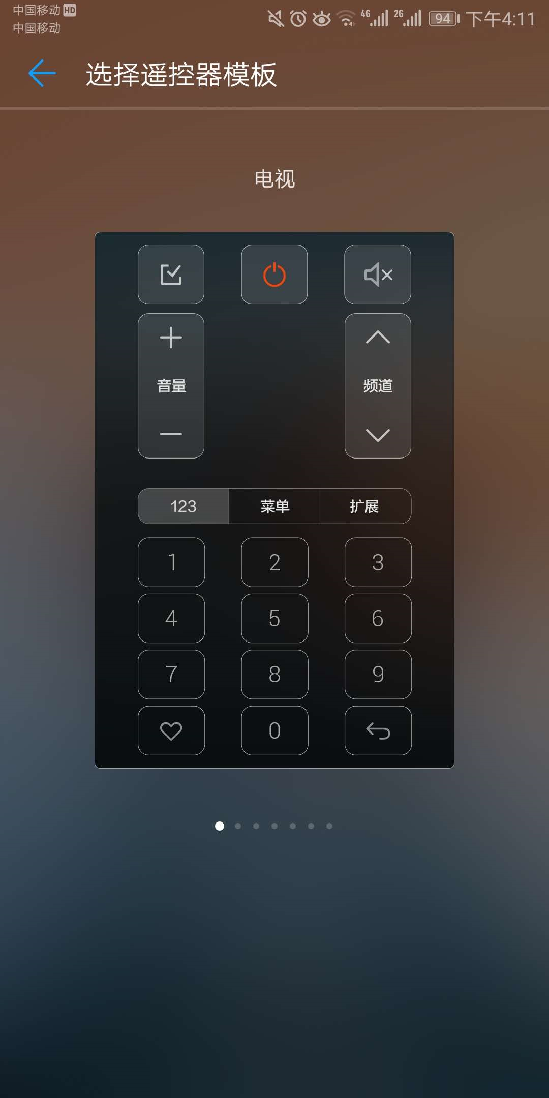 在【自定义】按钮中,可以根据自己的设备需求去更改遥控器模板。以电视为例,不管是点击中间的123还是菜单或者扩展,都会跳出不同的遥控器模板。