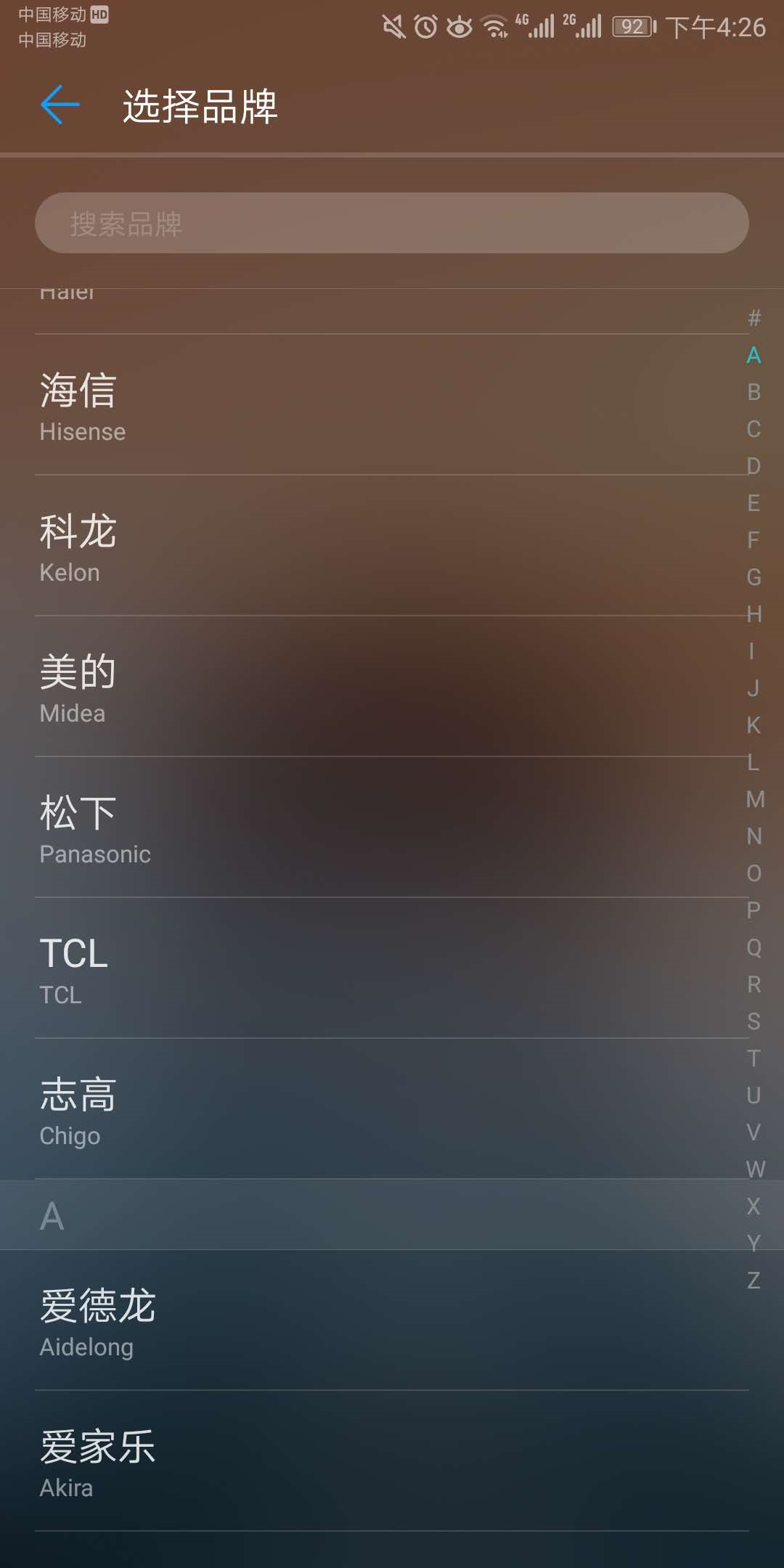 第二步:选择空调品牌。目前荣耀手机已经支持格力、海尔、美的、松下等229个主流及非主流的品牌的空调遥控。可以通过使用最上端的搜索功能去选择自己要遥控的空调品牌。