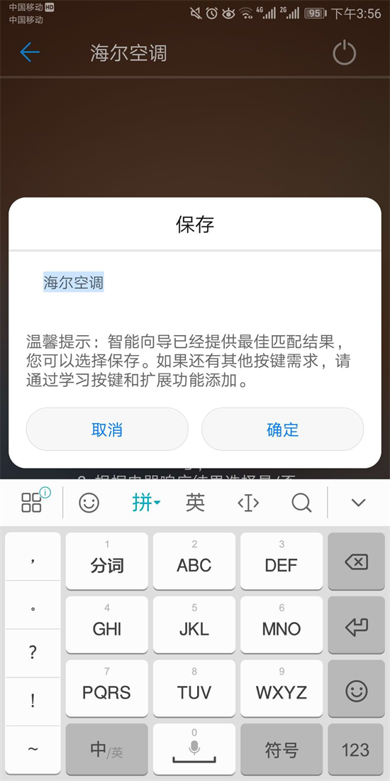 第三步:将手机对准遥控的设备并点击按钮发送红外信号,根据电器响应结果选择是/否。
