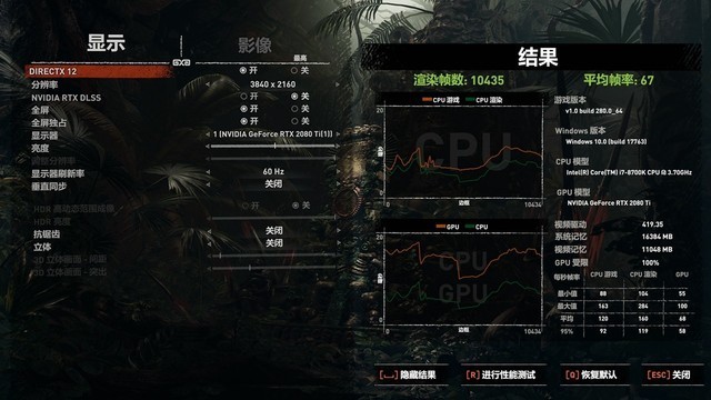 而一块好的显卡又能为玩家们带来什么呢?很简单,更高分辨率、更高的帧数以及如同电影般的3D画面。而同时更高的帧数如果对应在刷新率更高的显示器上时会让画面更加流畅,让玩家的操作有进一步的提升(虽然不大)。以NVIDIA显卡举例,随着RTX系列显卡新加入的光线追踪功能,让整体的画面更加贴近真实,而通过DLSS深度学习技术让帧数再次提高。如下图,使用iGame GeForce RTX 2080 Ti Vulcan X OC测试4K分辨率下测试《古墓丽影 暗影》,帧数为67帧,而打开RTX+DLSS技术之后帧数飙升至84帧。