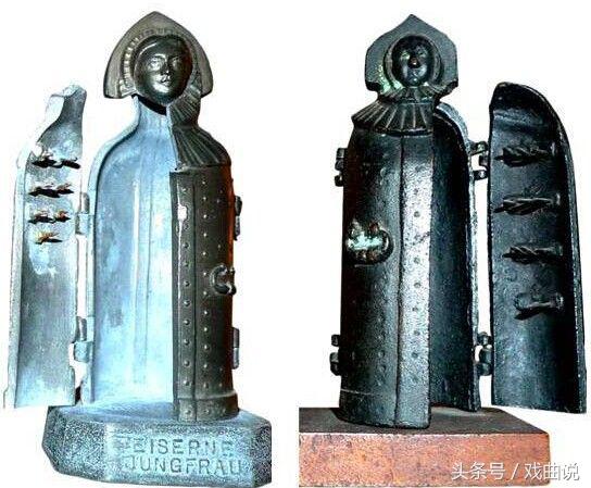 铁娘子是一种人形的模具,里面是空的,但到处都布有长钉子,最底下为可以活动的木板。这种模具多为木质的,从外面可以打开,但里面的钉子可是货真价实的、非常锋利的。