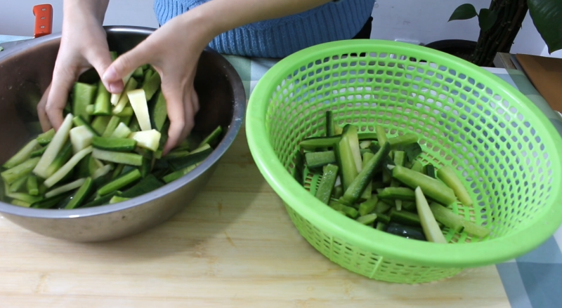 ③腌好的萝卜把它均匀的摊放到一个筛子里,放在有太阳的地方,让它晒干,把表面的盐分和水分全部都蒸发掉,大概需要2-3天的时间。