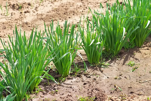 播种前开行距10cm,深度2cm的播种沟,然后将种子按照每公顷6-7kg的用量进行条种,播后覆土的厚度以1cm左右为宜。覆土厚度大种子发芽速度慢,后期幼苗生长速度慢,播种过浅则容易因为降雨或灌溉造成覆盖的土壤被冲刷和种子裸露。播种水可以在播种之前沟内浇水,土壤渗水深度10cm左右为宜,也可以采取滴灌或喷灌方式进行给水,但是滴灌和喷灌需要在表土干爽后打破板结层。