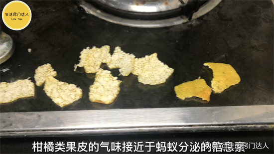 用橘子皮或者柚子皮等芳香气味的水果皮,能够有效驱赶蚂蚁,把橘子皮撕成小块防止在蚂蚁出没的角落,柑橘类果皮的气味接近于蚂蚁分泌的信息素,可以干扰蚂蚁的判断,使其找不到做标记的食物,蚂蚁的领地意识很强,还会让蚂蚁觉得这里是他人的领地,以后再也不来了。