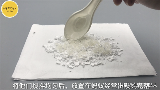 在一个容器中倒取一些小苏打和白糖,比例是1:2的分量,将它们搅拌均匀后放置在蚂蚁经常出没的角落里,白糖能吸引蚂蚁过来觅食,蚂蚁混杂着小苏打一起实用下去,小苏打能够破坏蚂蚁的胃,达到诱杀蚂蚁的效果。