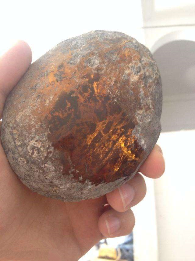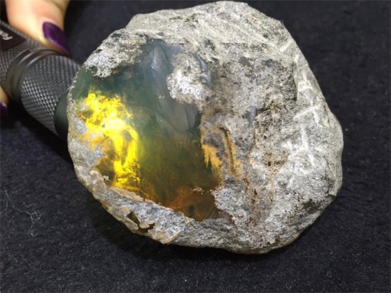 3.矿皮: 多米尼加有着较多的火山,其蓝珀矿体上常常有火山灰的存在,而且还有非常明显的龟裂纹。当然并不是所有的多米尼加蓝珀原矿都是如此面貌,但出现的几率大一些。 墨西哥蓝珀原矿则没有这么明显的特征,但是其矿皮厚度不高,一般都只有薄薄的一层。两者在原矿上的区别不是很明显,但依旧是一个有效的方法。多国矿皮感觉砂土质明显,比较容易掉渣。墨西哥的矿皮更象结痂,比较硬石化严重。
