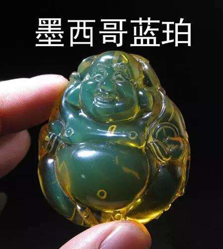 两者的不同之处: 1.颜色: 两个地方都是蓝珀品种,但它们之间的颜色有着较大的区别。颜色 在原矿时还没有多大区别,但将它们打磨过后,差异就显现出来了。 多米尼加蓝珀的颜色更偏向于蓝色调,个别情况甚至蓝的发紫。 墨西哥蓝珀则属于蓝绿色调,蓝中可以看出一些绿意。 要是两种料分别放在眼前区别不明显,但要是放在一起看,蓝色的差距一目了然,特别是雕件,颜色差异很大 多米尼加的天空蓝,正蓝色,是墨西哥不出产的。