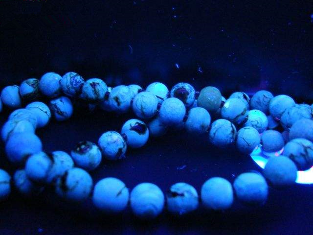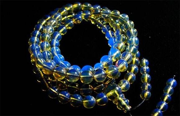 方法:选多米蓝珀圆珠和墨西哥圆珠各一颗,在黑暗的环境中,白光照射10几秒钟,迅速移开手电,可以明显看到墨西哥的流光时间要长。