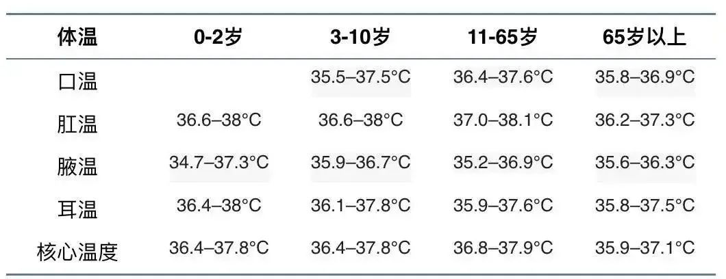 不同年龄同部位体温