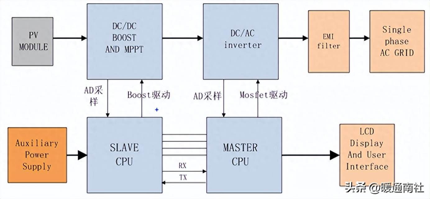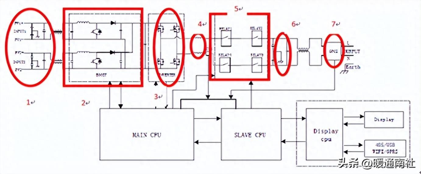 升压部分,上图对应2,用于将电池板输出的低直流电压升至高直流电压,用以逆变。