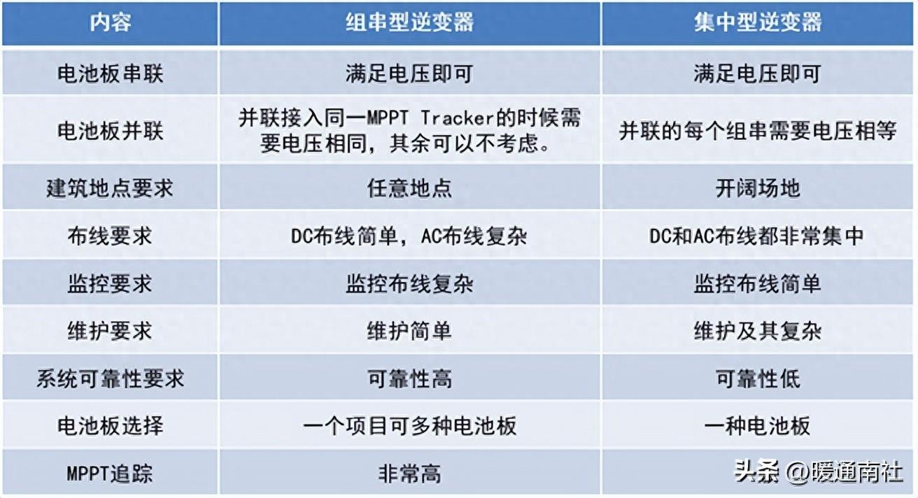 组串型逆变器和集中型逆变器优缺点对比: