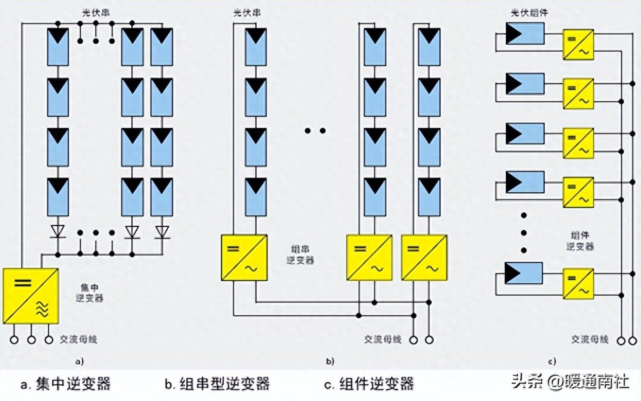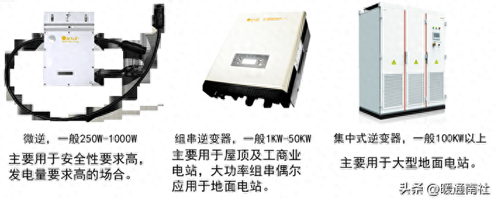 逆变器按照功率等级来分一般分为微型逆变器,组串式及集中式逆变器。
