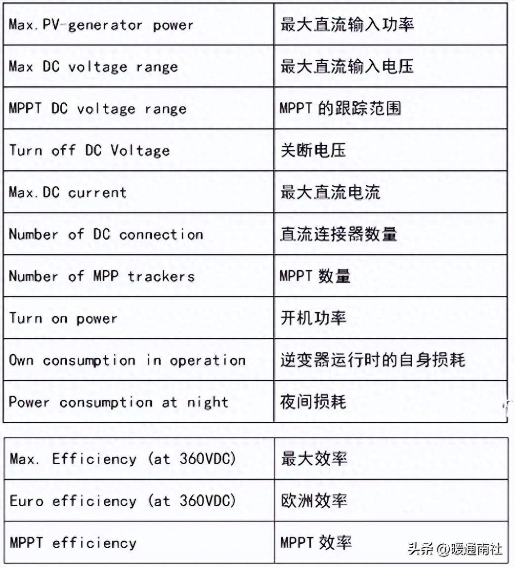 1:最大输入功率:表示逆变器最大匹配的组件功率,建议不超过 该功率,特别是光照特别强的地方,比如国外的澳大利亚,中国的北方地区。