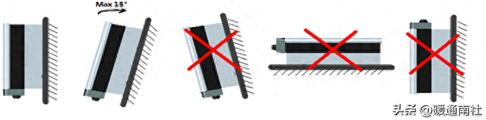 请按如上图标示安装逆变器,建议在垂直不超过15度角方向安装逆变器。