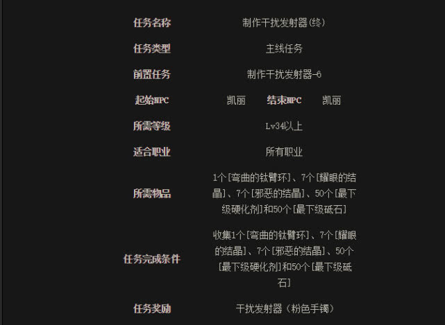 这两个任务就放在一块吧,毕竟都是坑爹的模式都是一样的。这两个任务都是需要玩家从胶囊中开到相应的任务物品,。前者是要小型干扰芯片,而后者则是需要土罐人偶,但是对于很多脸黑的玩家,这两个任务简直就是灾难。开到的黑硬物质和博肯人偶不知道多少了,在那个金币稀缺的年代,真是做任务做到倾家荡产。