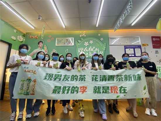 活动期间,粉丝可到指定美宜佳门店参与打卡互动,其中组团前往的粉丝到店可享受“团宠”大礼包,参与“土味情话”短视频挑战,有机会赢取品牌代言人李现的限量周边。店内还开展了新品茉莉柚茶试饮活动,清甜的柚子遇见了花茶的清香,消费者反馈口感清甜,像极了恋爱的味道。