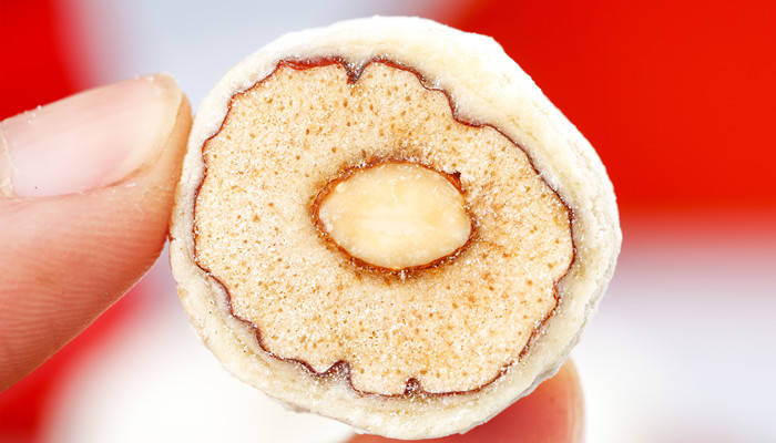 奶枣的制作工艺很简单,先把大枣去掉核,往里面塞入一颗杏仁干果,然后在大枣的外面裹上一层奶粉。吃的时候,舌尖先感受到浓郁的奶香,然后是大枣柔软的口感,紧接着枣香味也扑鼻而来。咬到内馅的时候,牙齿先感受到杏仁的脆,咀嚼时,杏仁的香脆和枣子的柔软结合在一起,格外好吃。
