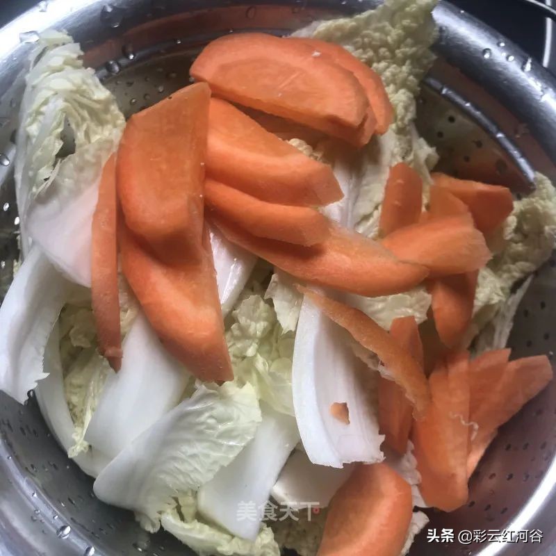 10. 依次将娃娃菜,胡萝卜和豆皮煮熟盛出。