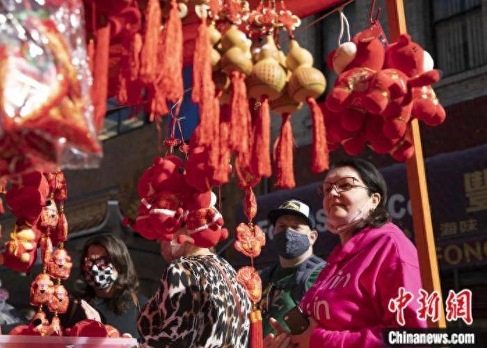 美国旧金山市民在唐人街春节花市上购物。刘关关 摄