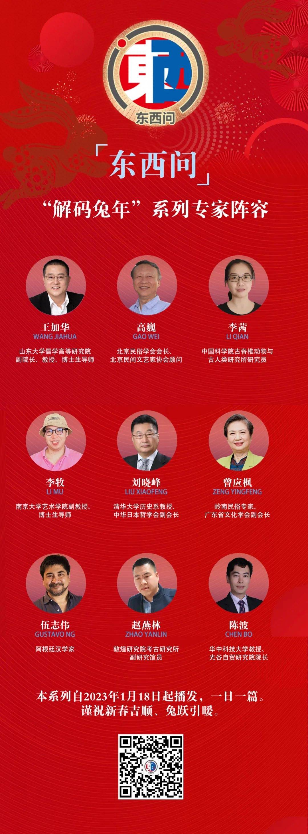 伍志伟:生肖“兔”在十二生肖排行第四,对应十二地支中的卯,兔年即卯年。具体来说,一个生肖年持续一个农历年,每十二个生肖年为一个循环周期。另一个周期即“五行”,每个“行”持续2年。如此形成了两个互补的周期,整个周期持续60年。故而,2023年对应天干为癸,地支为卯,五行属水,故为水兔年。