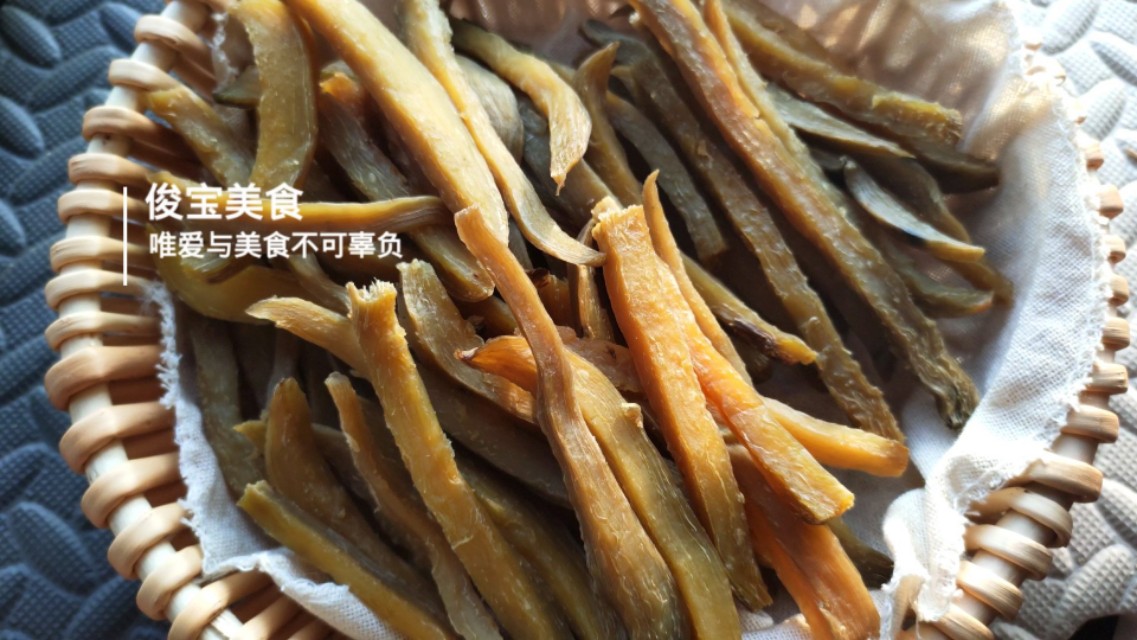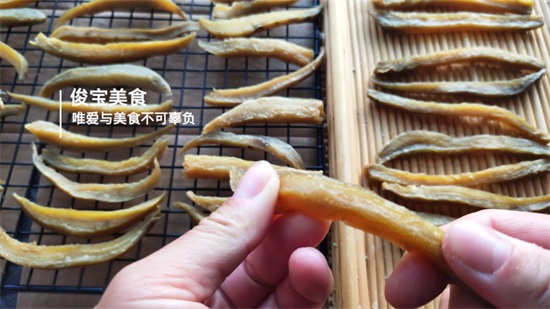 太阳给力的话,一般晒两天时间就可以了。喜欢吃柔软有韧劲的红薯干,到这一步就可以吃了。