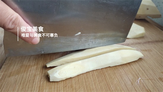 首先将红薯洗净去皮,切成比手指粗一点的条状。要比平时吃的的红薯干切的稍微大一点,因为晒干以后还会缩水。