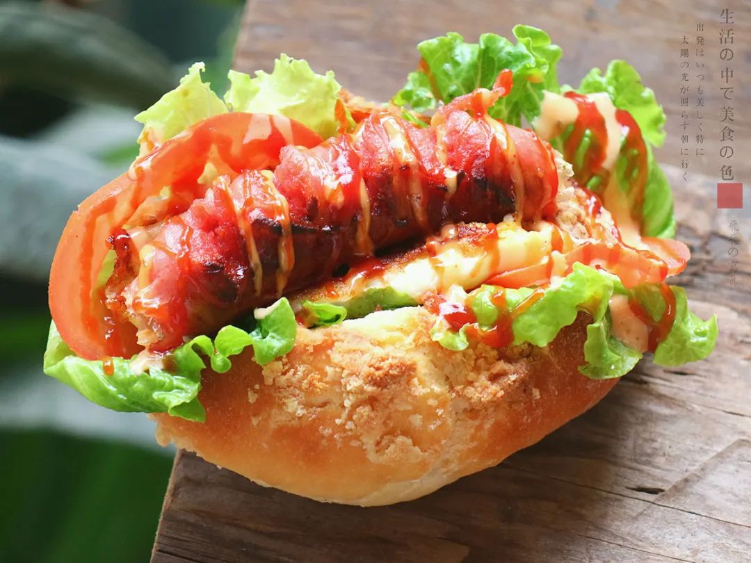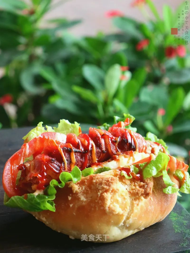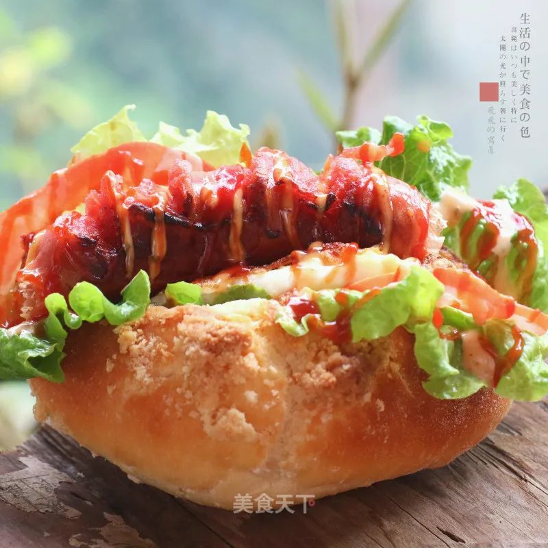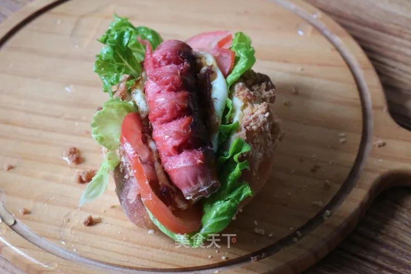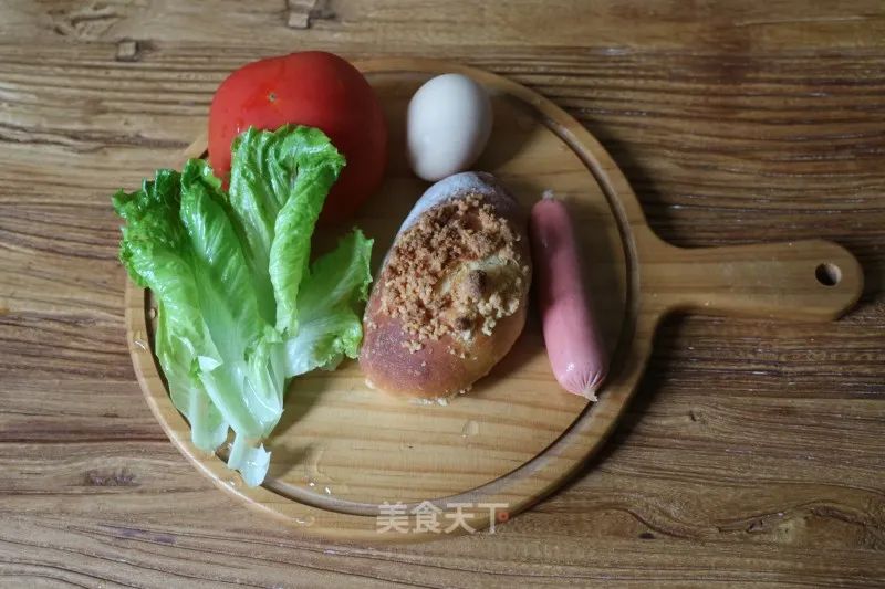 汉堡1个热狗1个西红柿2块生菜2张鸡蛋1个沙拉酱适量番茄酱适量