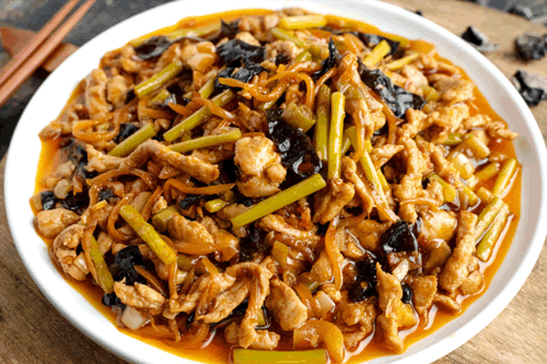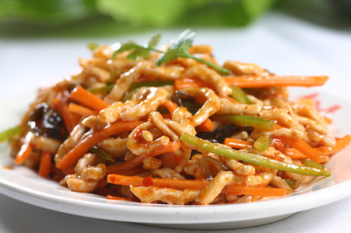 鱼香肉丝中多用鲜嫩的里脊肉,烹制之前要先切成丝状,同时还会辅以木耳、胡萝卜、青椒等食材,也要切成规则的丝状。鱼香肉丝讲究“见油不见汤”,因此调料的配比非常重要。出锅后的鱼香肉丝,色香味俱全,也是一道下饭神器。