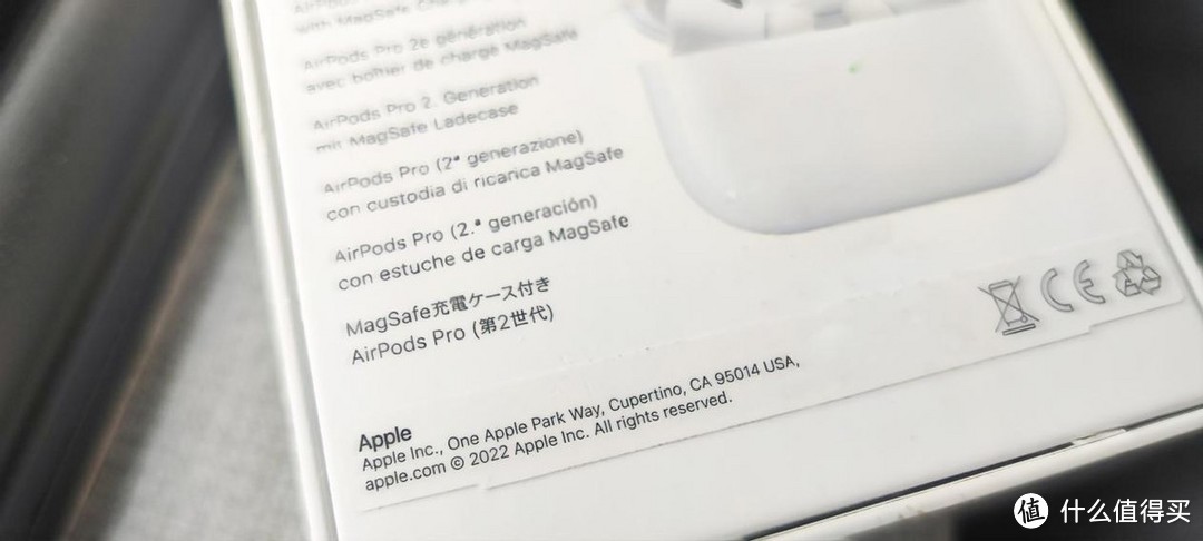 和一代一样纯白色天地盒,甚至在侧面都还是“Air Pods Pro”,这让我一度认为苹果在偷懒,包装盒都懒得换了,直到看到了后面的“第2世代”。
