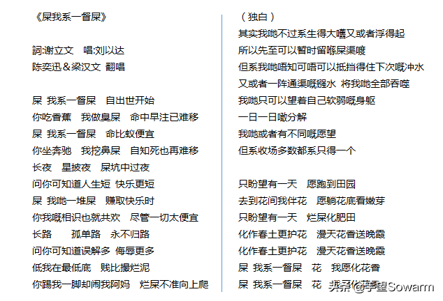 正如主题曲《屎我系一督屎》唱的那样,他们自知是社会链条的最底层,却无法改变作为屎的命运。于是便自嘲:我们这些屎,活在最底层,命不如蚂蚁,但贱比烂泥,一旦有向上爬的勇气,还被人瞧不起。