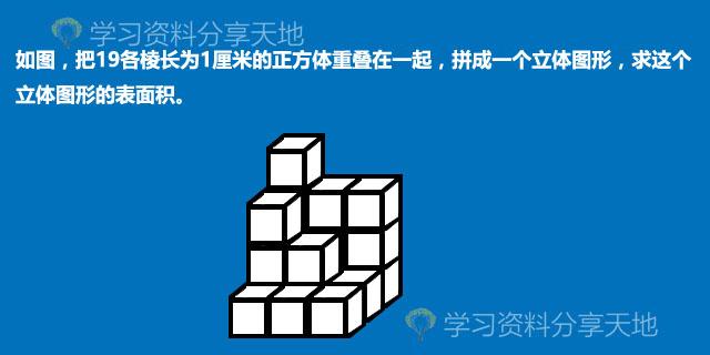 如图,把19个棱长为1厘米的正方体重叠在一起,拼成一个立体图形,求着立体图形的表面积。