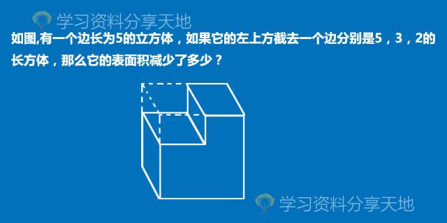 如图,有一个边长为5的立方体,如果它的左上方截去一个边长分别是5,3,2的长方体,那么它的表面积减少了多少?