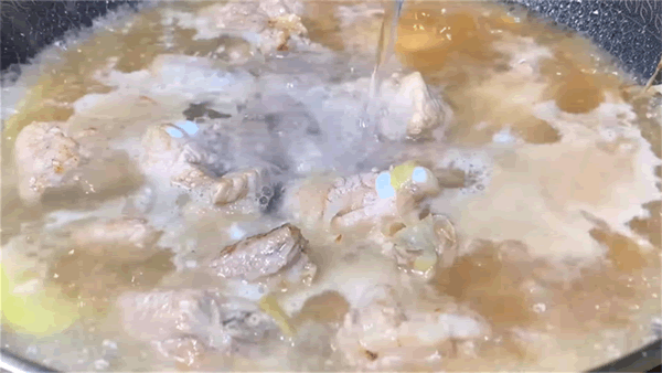 3、然后倒入适量的开水,切记不要加入冷水,因为排骨会冷缩,营养成分会流失掉,搅拌均匀之后,盖上盖子焖20分钟。