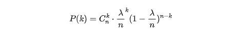 假设我们把一天的时间切分成了n份,我们想知道一天当中会有k个栗子掉下的概率,根据二项分布的公式,这个概率就是: