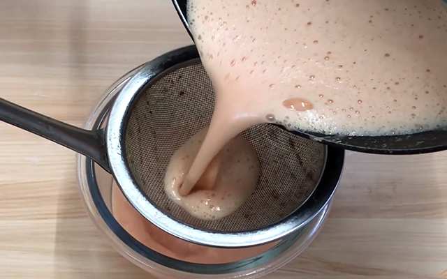 第三步:棉花糖完全融化之后过滤到玻璃容器中,放凉