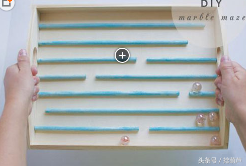 第六步:把木棍黏贴在木托盘上,放上大理石圆珠,就可以开始游戏了。