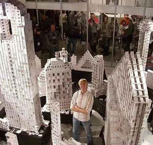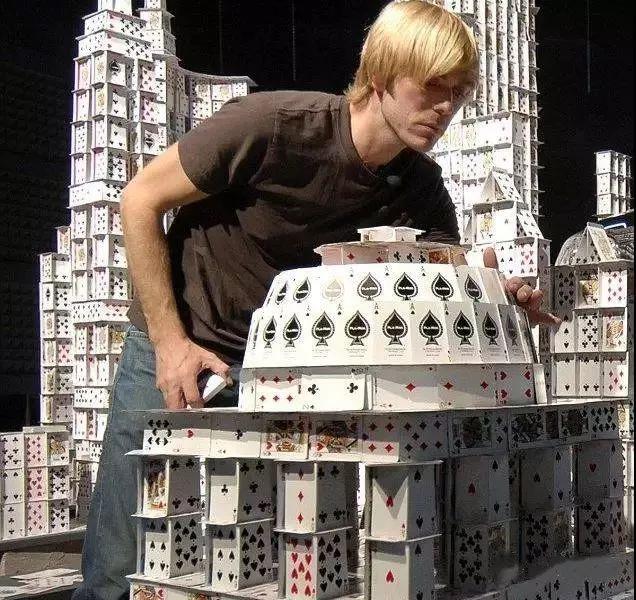 33岁的美国人布赖恩·伯格是一名建筑师,他却不是用砖头,而是用一张张扑克牌来“搭建房子”,且不用任何粘合剂!他搭建的一座扑克牌“摩天大楼”,竟然高达7.86米!不仅屡屡打破吉尼斯世界纪录,这一特殊的“建筑”本领也成了他赚钱养家的谋生工具。
