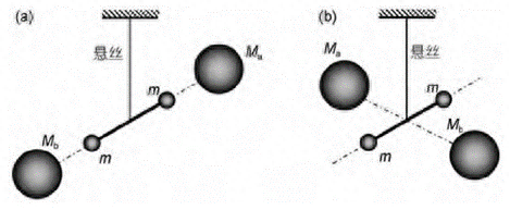 扭秤平衡位置,这时吸引质量的引力为扭秤系统提供了一个负的回复力矩,系统转动因此变慢,这时的转动频率是
