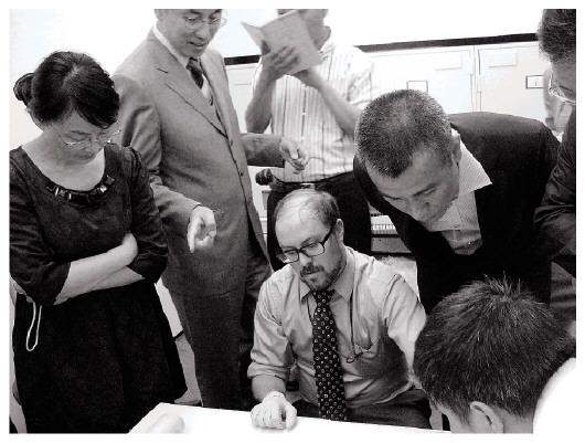 项目组在宾夕法尼亚大学博物馆观看作品。大系项目组供图
