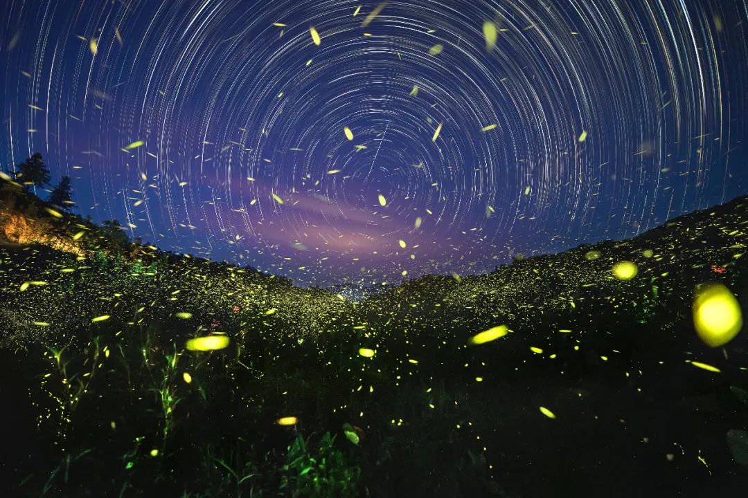 栖在芒花里无数的萤火虫哗然飞起,满天星星点点,衬着在月光下波浪一样摇曳的芒花,真是美极了,美得让我们都呆住了