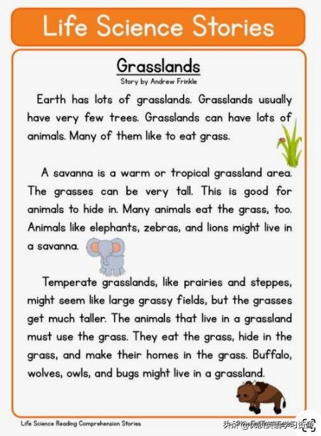 今天分享一篇阅读理解。可以学习草地的话题时进行同步阅读,也可以作为日常的阅读材料。