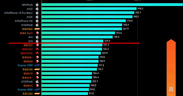 具体数据方面,苹果A13芯片的单核跑分为1330分,在跑分测试软件之中,这款移动处理器的单核跑分依然靠前,比新款骁龙8 Gen1、天玑9000都要来得更强。这里科普一点,影响手机流畅的关键要素还是单核跑分性能,现在的手机性能过剩,像苹果A15这样的顶级芯片,可以智能调用其中的部分核心数,保证性能的同时,还能降低iPhone功耗,因此,A13芯片还是很顶的,完全不怂骁龙8芯片。