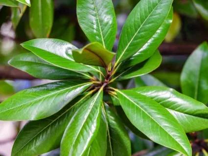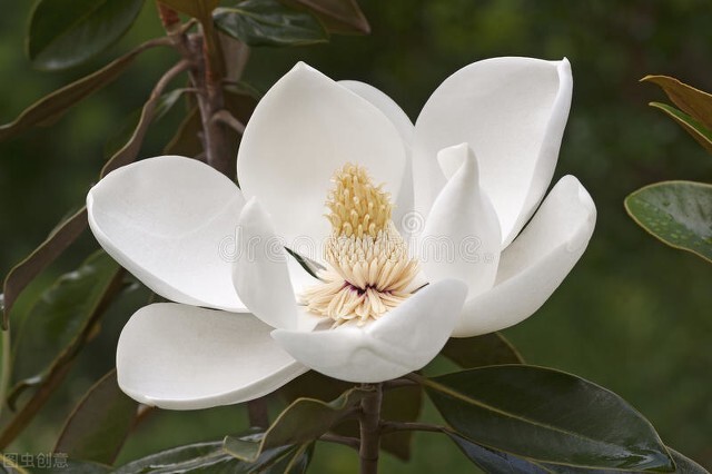 玉兰花的叶子比较硬正面是光滑的墨绿色,背面有一层密密的小绒毛,摸着像磨砂面的鞋子一样。