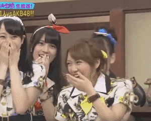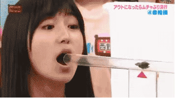AKB48组合,这期节目的竞技单元是比赛吹气:两个MM分别各自在管子的一头,谁先把管子里面的东西,吹到对方的嘴里就是获胜…