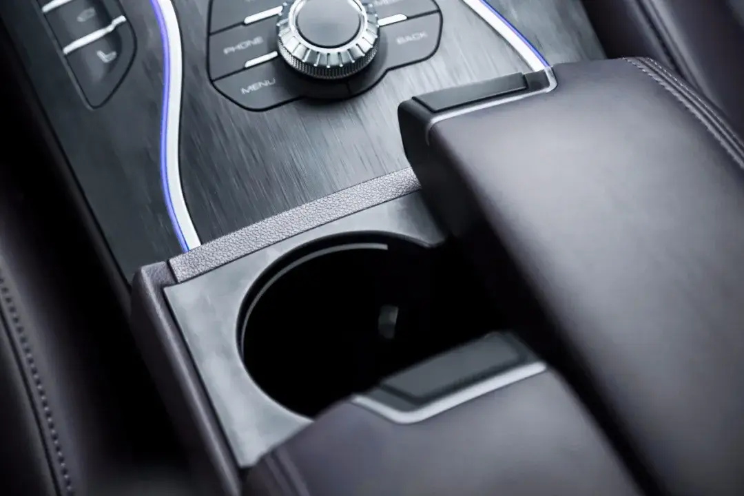 VV7的中央扶手采用对开式设计,且可以前后移动,此时前排杯架便可以实现隐藏。